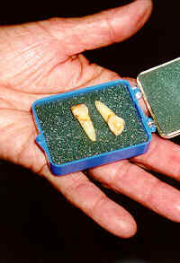 It turned out that the minerals in the water were responsible for the discoloration and for the strengthened enamel. If there's fluoride in your toothpaste, these teeth in this plastic box at the Bauxite Museum are part of the reason why.