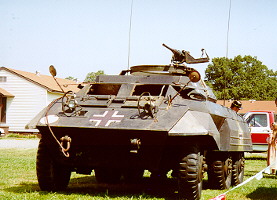 This M8 armored car, a part of Al DeMers' military vehicle collection, saw action in WWII, Korea and at the 1957 unpleasantness at Little Rock Central High. It's dressed up with German markings for a WWII reenactment during the Arkansas National Guard's annual Minuteman Day celebration.
