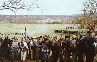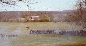 Reenacted battles are scripted. There is one reenactor, usually the man who has the most experience, who acts as general in effect for both sides. He gives instructions to unit commanders listing which units arrive on the field at what time,