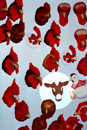 So this shop sells serious gifts to people who take their poultry seriously. But note that the proprietress of this shop is hedging her bets. Found among the chickenhead refrigerator magnets is evidence that she is diversifying her inventory. Either that or we have discovered one of those "other" chickens.
