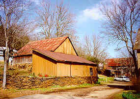 Here's a picture of the place. Judging superficially, you might expect to find Lonesome Polecat inside whuppin' up a batch of Kickapoo joy juice. There is much to be said for a winery putting forth a genteel, sophisticated corporate image, but ultimately the goal is to put forth really good wine. And it's all well and good to have the right wine from this year's fashionable grape in the proper wine glass with the proper cheese while wearing an appropriate winedrinking scarf, but there's also something satisfying about kicking back in the shade of an old red oak at the end of a day, sitting on a stump and drinking Mount Bethel's wild plum wine from a mason jar.