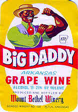 Here I've been going on and on about the Wild Plum and I haven't yet mentioned Big Daddy. It's a powerful port. Nineteen percent ethanol...wham! I'm not a big port drinker myself, but I wanted to show you the label. Thousands of these labels, printed way back in the 1950's, were recently found in storage. Back then, Peggy told me, any batch of wine that wasn't up to winery standards was sugared down, fortified with brandy and sold cheaply as Big Daddy port.