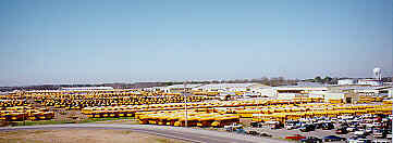 The sides of each of the busses are painted "THISNTHAT SCHOOL DISTRICT," and all the names I read are unfamiliar to me and I didn't see any two busses painted for the same school district. I intend to write to AmTran to find out the figures on how many busses they make, and whether or not they are the biggest big yellow bus manufacturer on Earth.